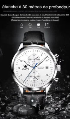 La montre OLEVS 2931 allie élégance et praticité, faisant d’elle un choix judicieux pour ceux qui apprécient le luxe décontracté.
